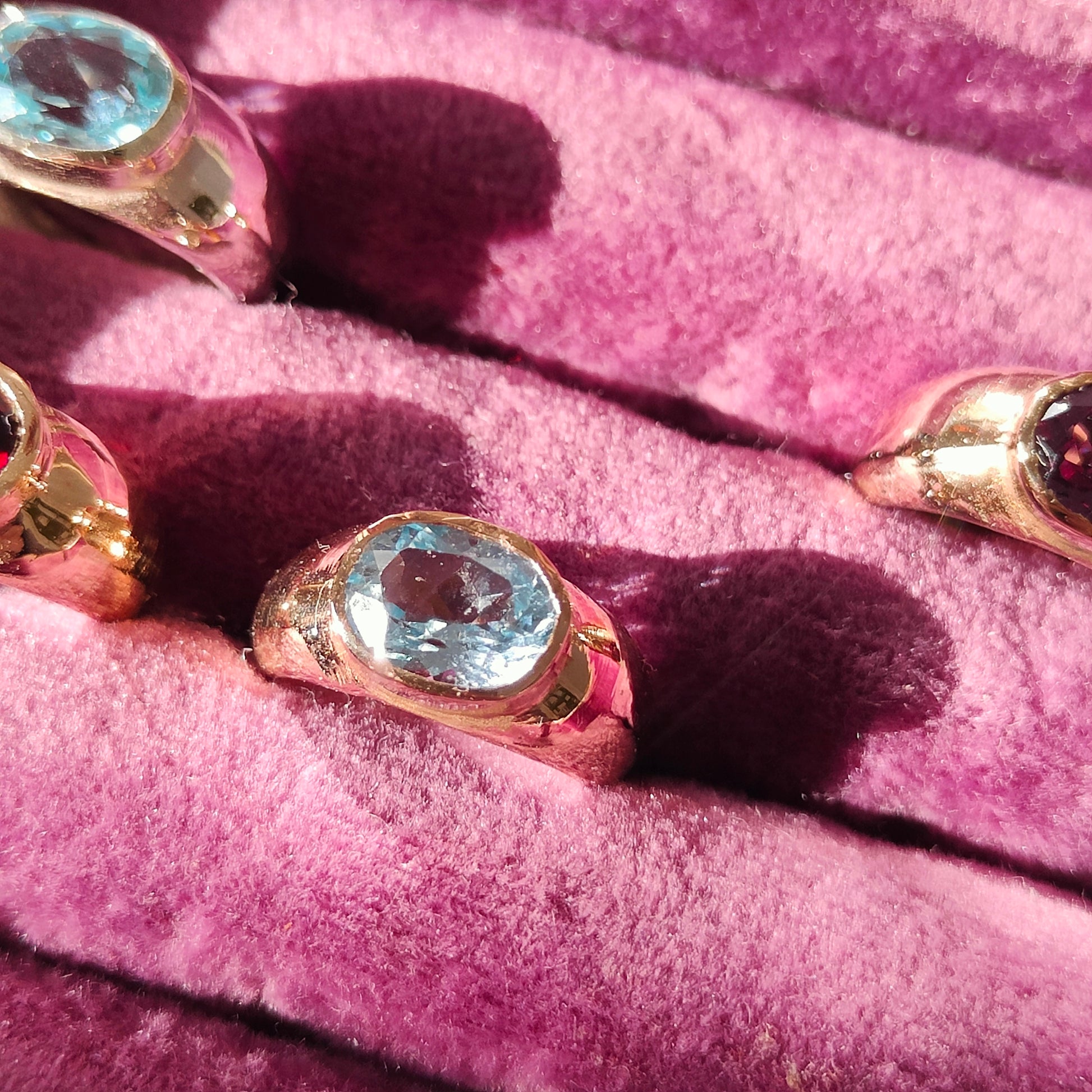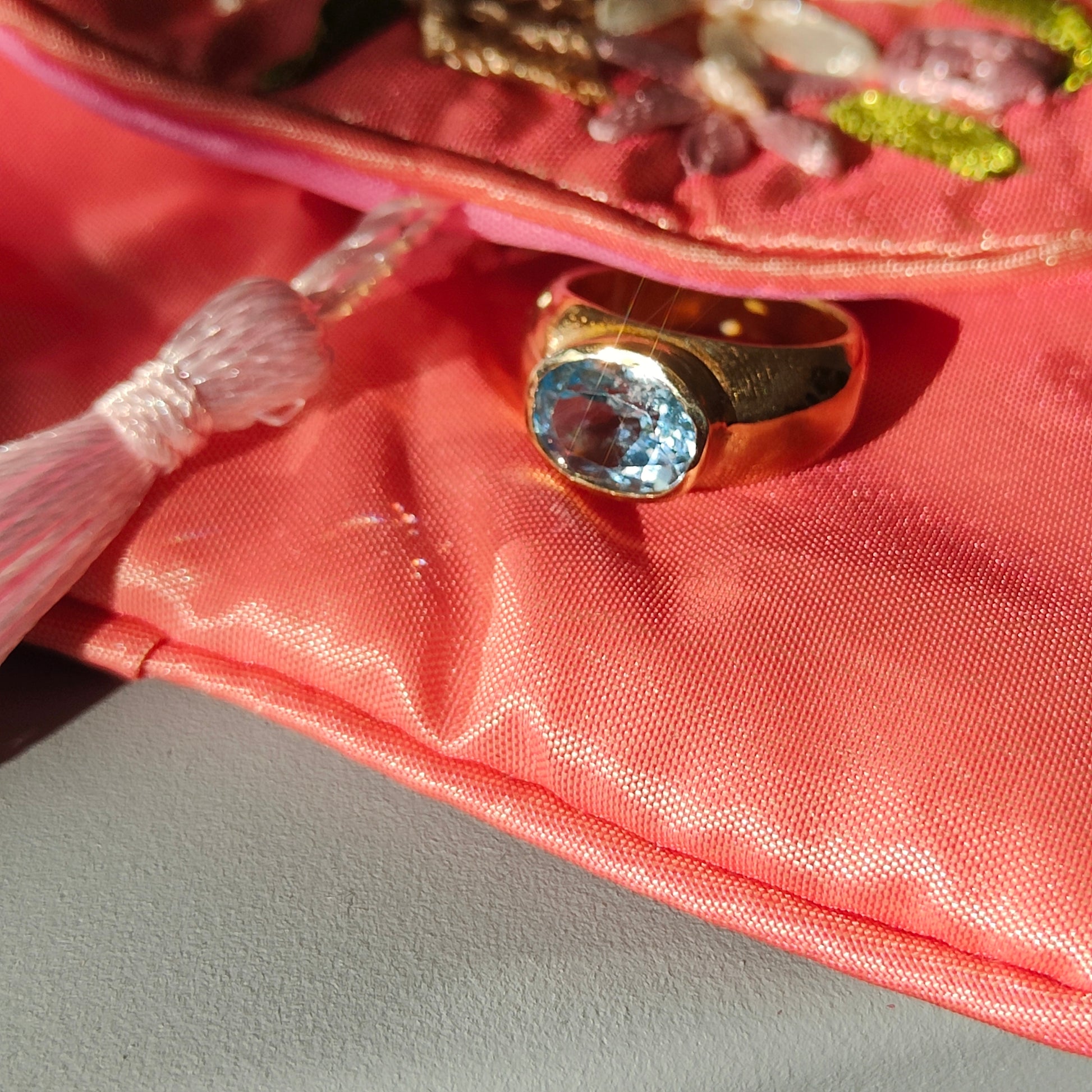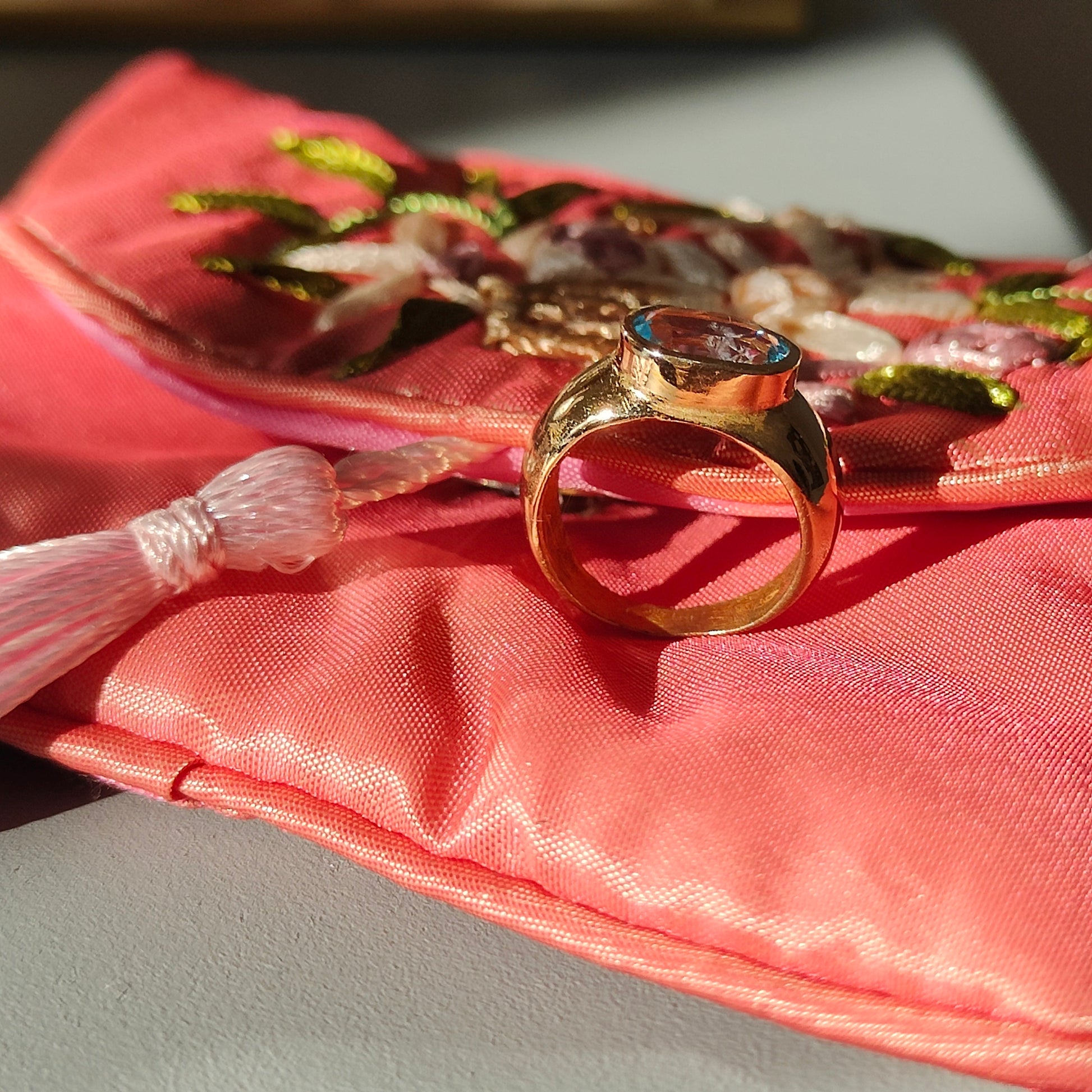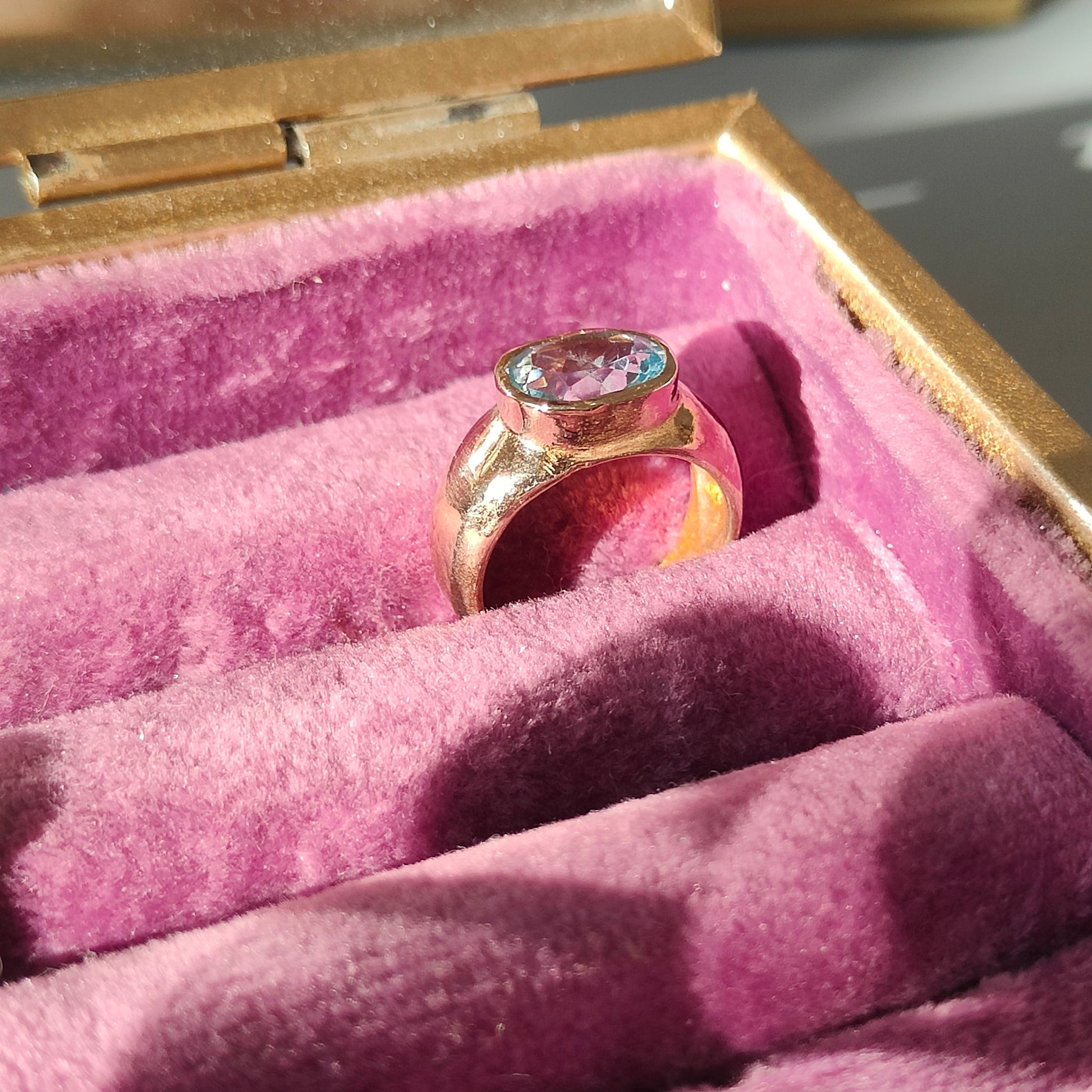 Anello da mignolo in bronzo giallo con topazio azzurro.