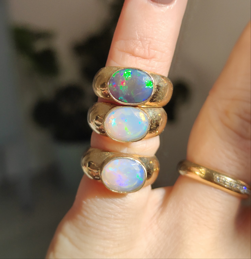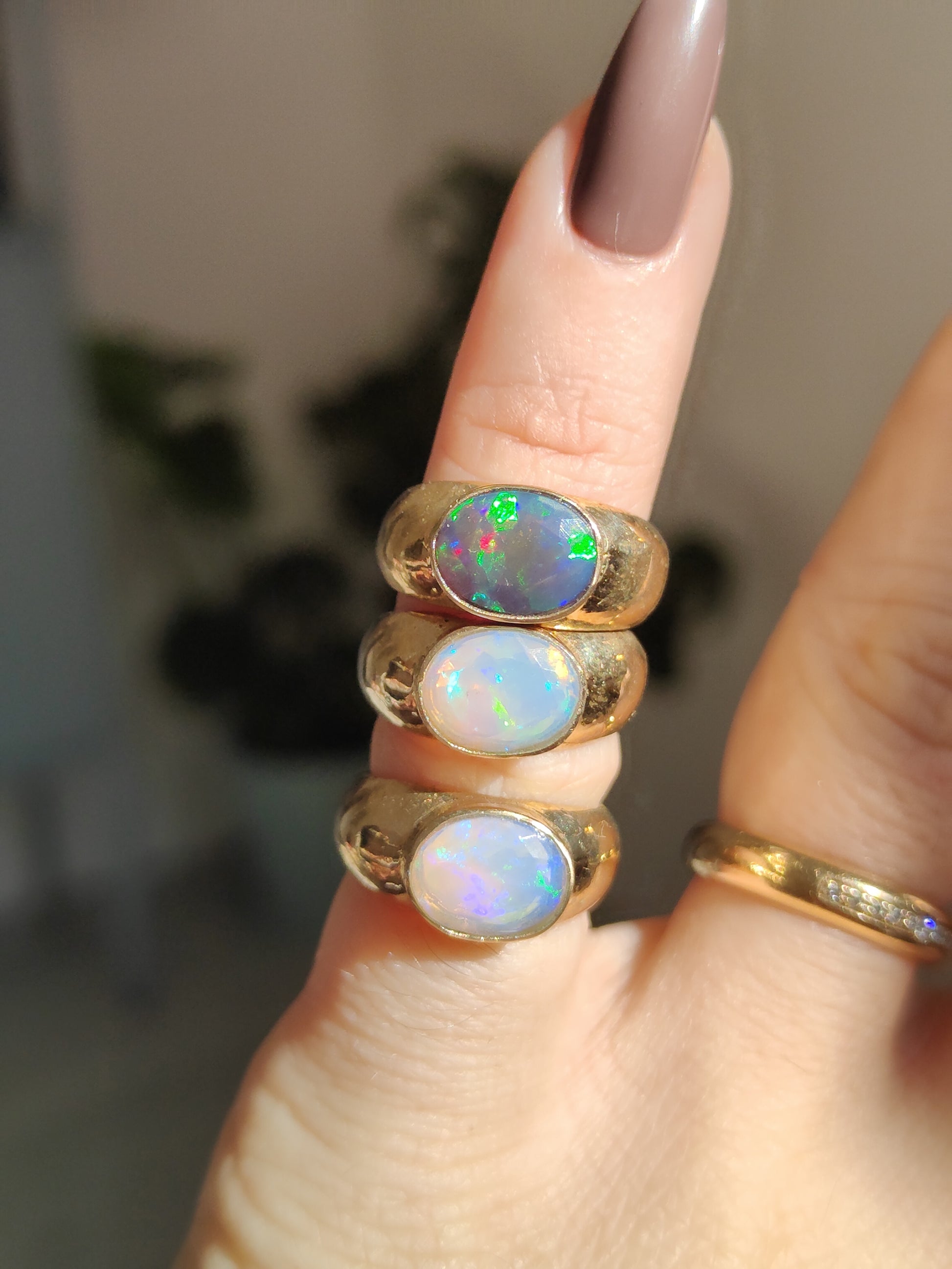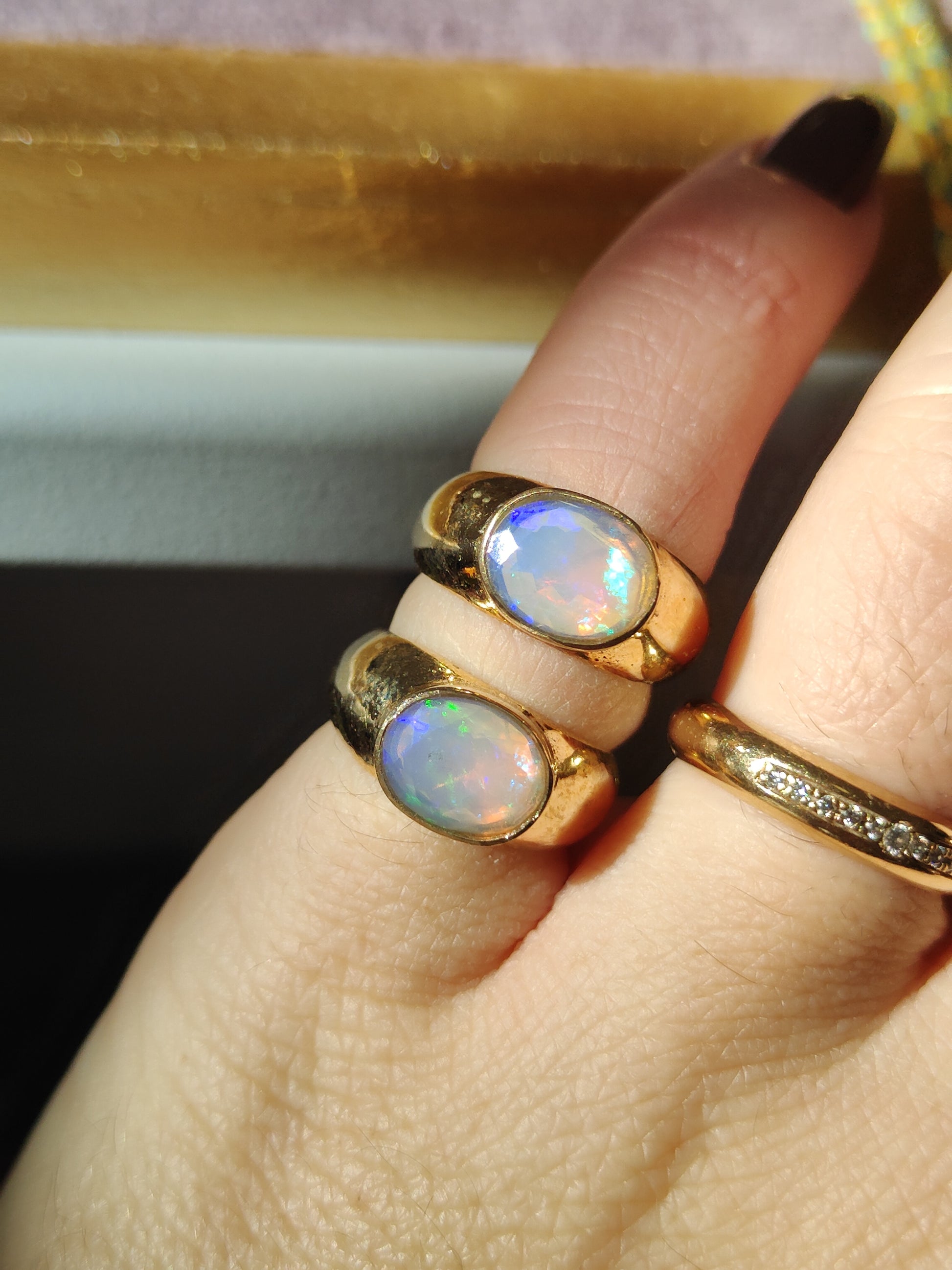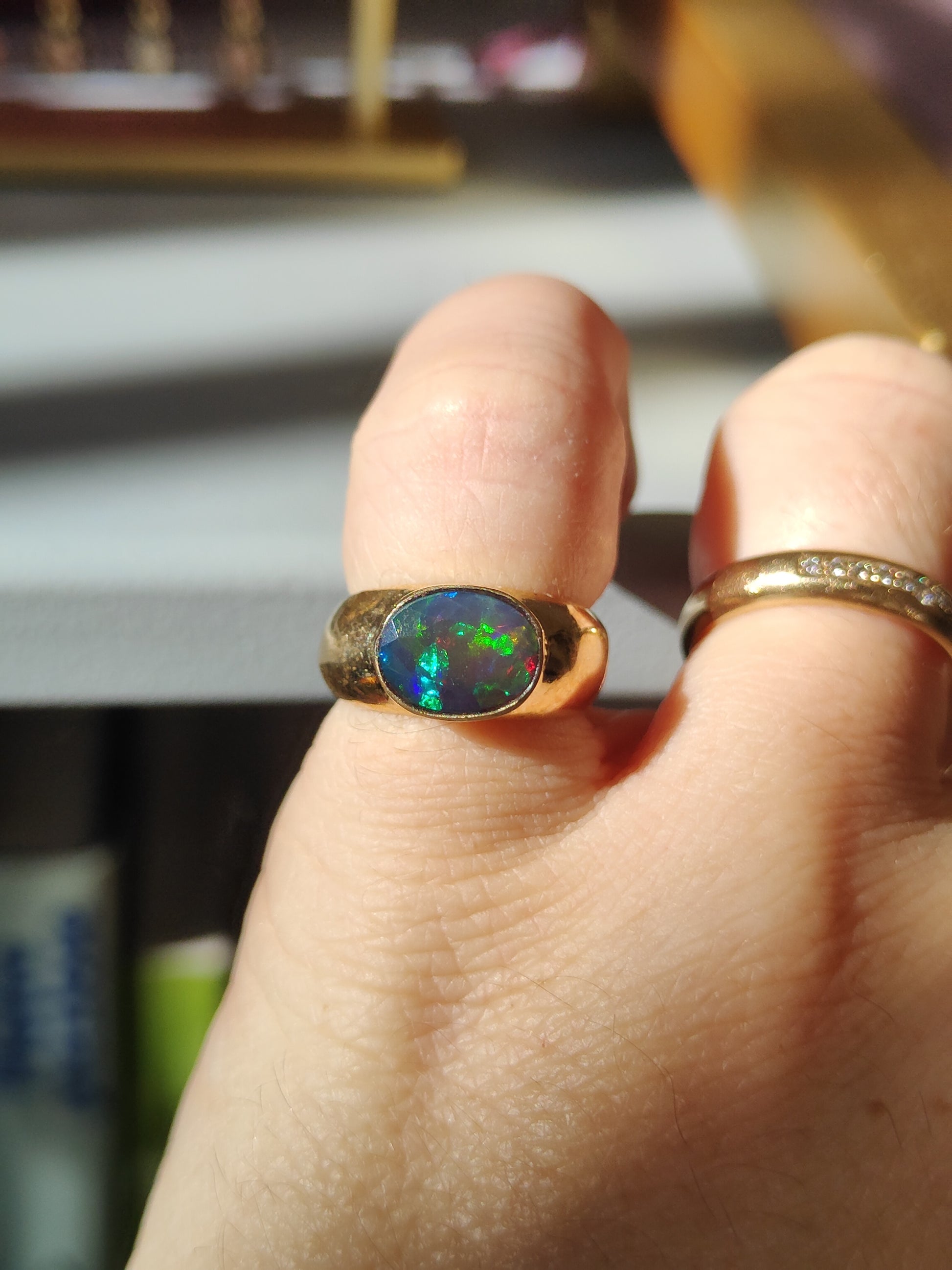 Anello in bronzo giallo da mignolo con opale etiope super luminoso sfaccettato