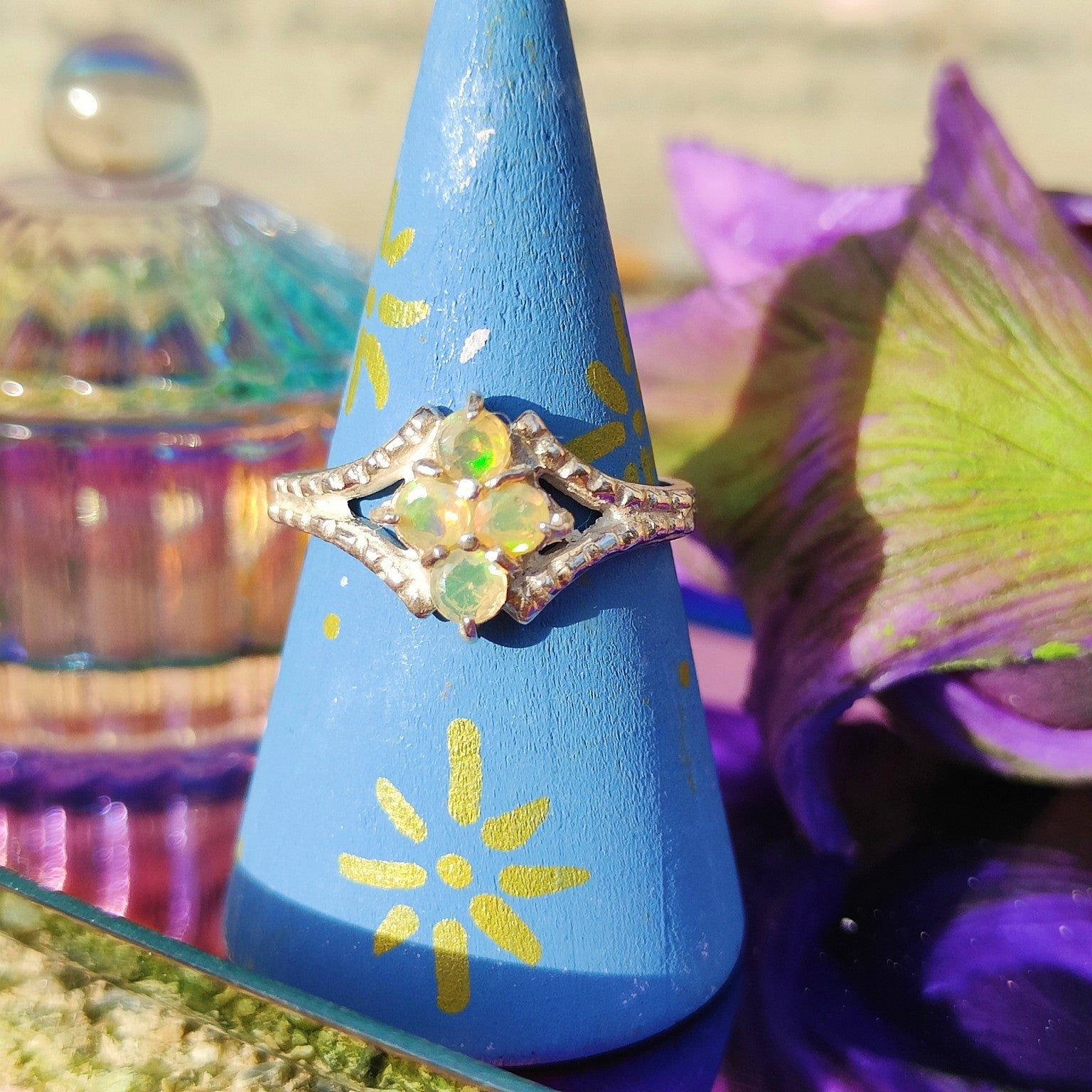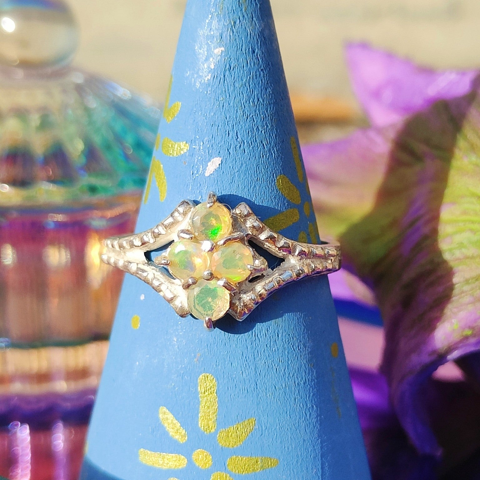Anello in argento 925 con un design raffinato, classico e senza età! Incastonati, ci sono quattro opali etiopi.