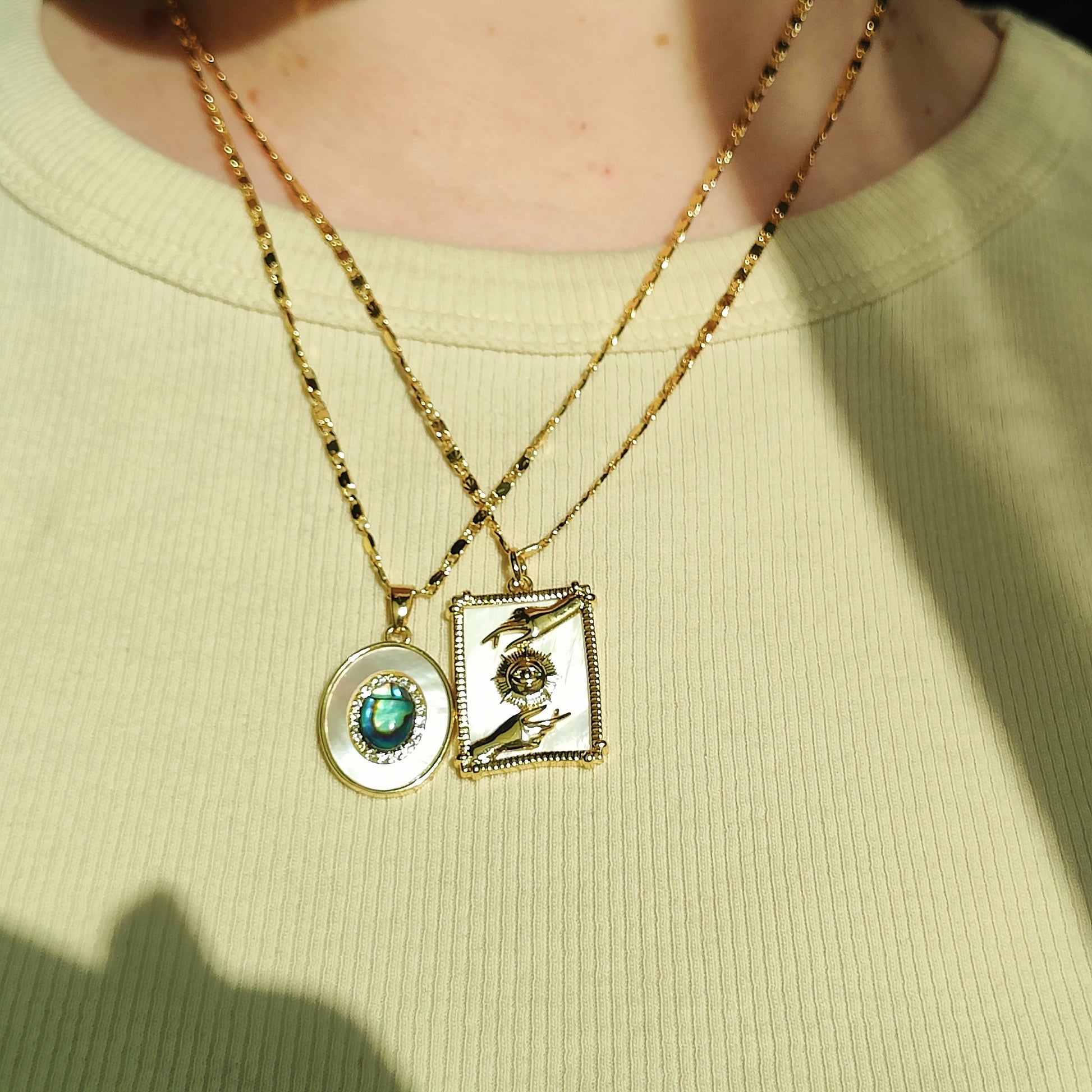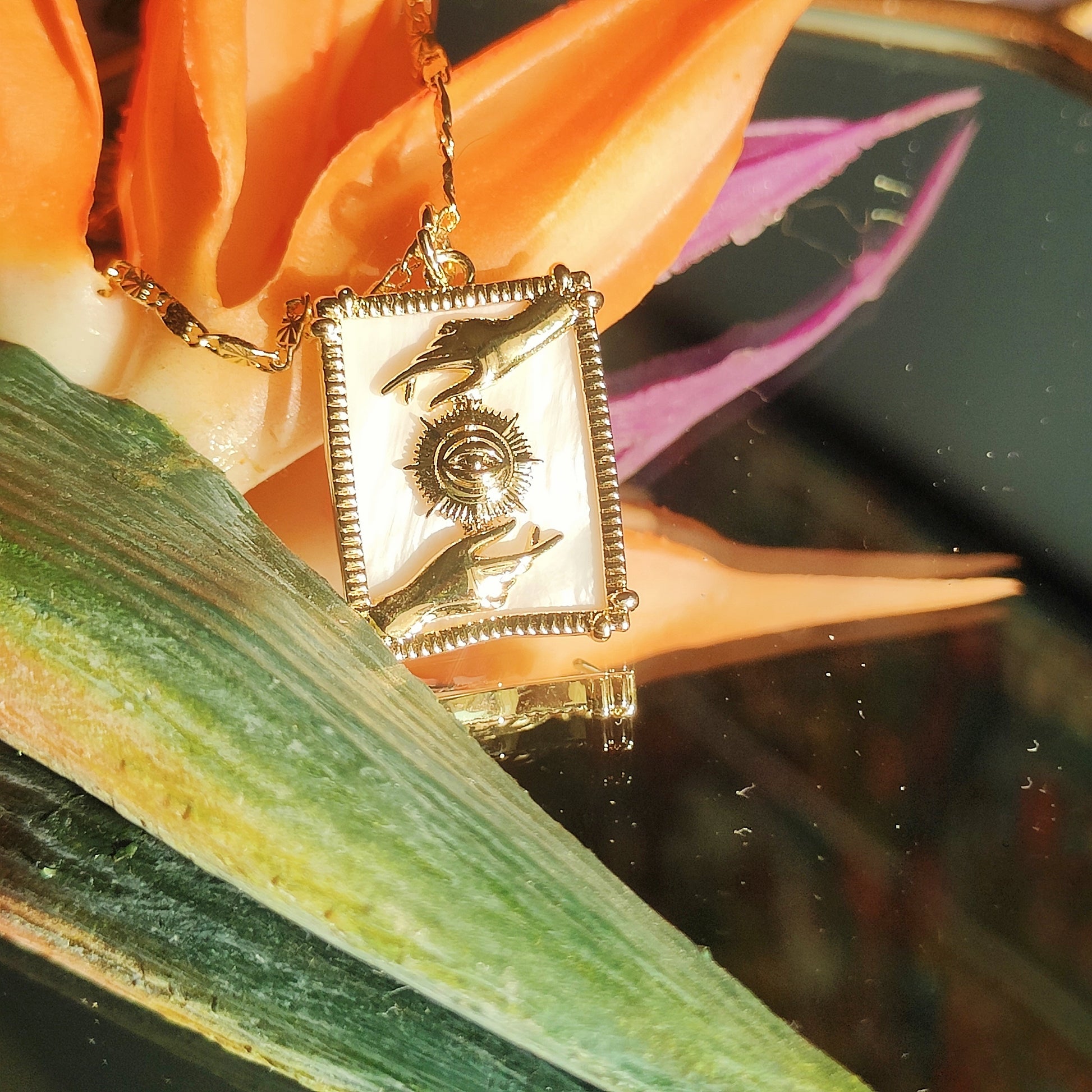 Un occhio "abbracciato" da due mani, simboleggia l'anima e la coscienza che vengono protette con calore. In un momento storico in cui l'empatia è l'ultima delle virtù, questa collana vuole rappresentarla ed esaltarla.